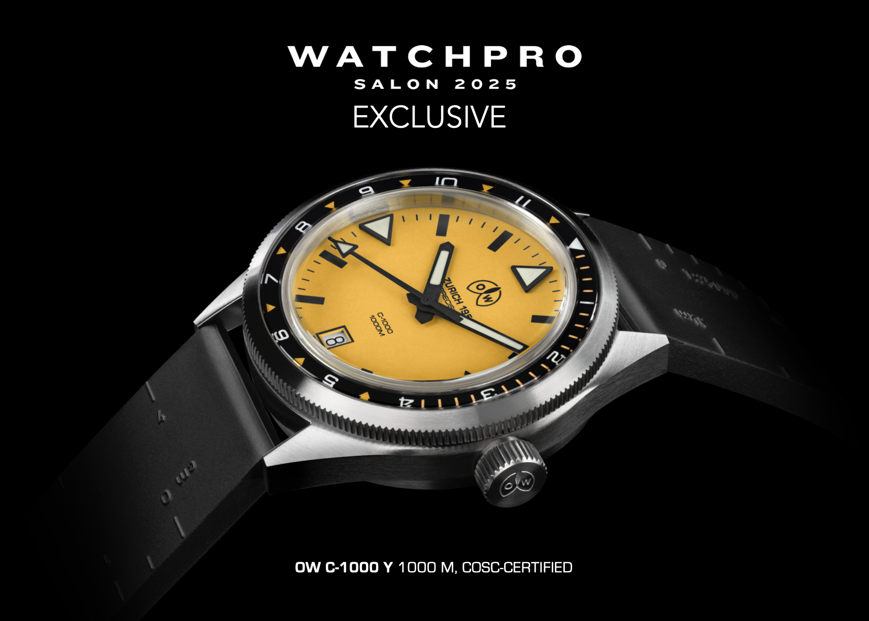 WatchPro Salon 25 saw OW unveil the C-1000 Yellow, a throwback to the yellow dialled OW Precision Caribbean 1000 of the mid-1960s. Yellow dials became popular with the vanguards of scuba, not for aesthetic reasons, for their exceptional legibility and versatility beneath the surface. Highly visible in the shallow zones, but as the diver descends the yellow disappears fading to light grey and providing even greater contrast with matt black hands and indexes. Supported with a DPS in Oracle Time and a hands-on reviews in Fratello and Wrist Review.
